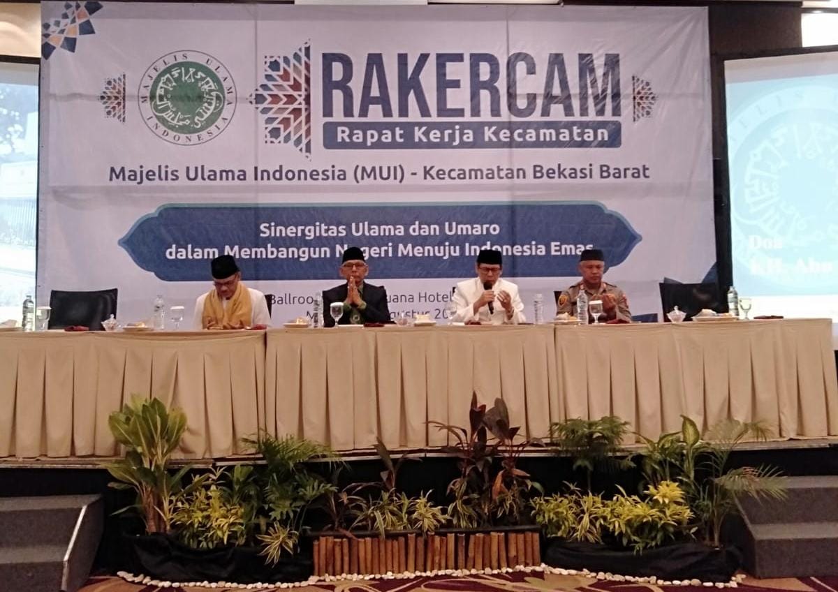 Bekasi Kota, Detik Kriminal – Dalam rangka mempererat tali silaturahmi serta membangun sinergitas antara Polri dan para ulama dalam menjaga keamanan dan ketertiban masyarakat (Harkamtibmas), Kapolsek Bekasi Barat AKP Dr. H. Wahyudi, SH., MH. menghadiri Rapat Kerja Kecamatan (Rakercam) Majelis Ulama Indonesia (MUI) Kecamatan Bekasi Barat. Kegiatan ini berlangsung di Ballroom Sangga Buana, Hotel Santika Harapan Indah Bekasi, pada Minggu, 10 Agustus 2025.