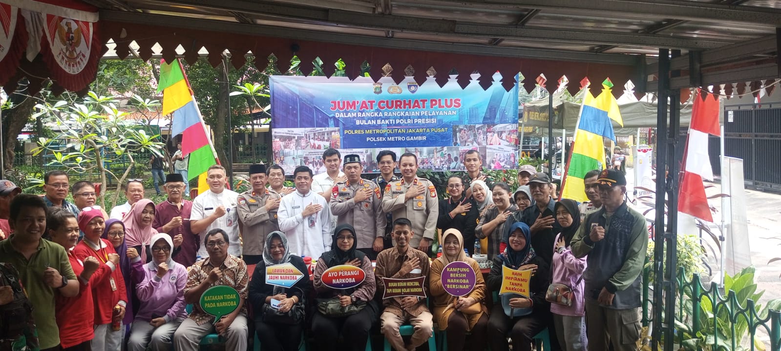 Turut hadir Kasat Reskrim AKBP Roby Hary Saputra, Kasat Narkoba AKBP Wisnu Setiyawan Kuncoro, Kasat Binmas Kompol Jarono, Kapolsek Gambir Kompol Rezeky R. Respati, Danramil 04 Gambir Mayor Arhanud Bateng Rifai Isdiarto, serta perwakilan dari kecamatan, kelurahan, FKDM, Pokdar Kamtibmas, ibu-ibu Jumantik, dan tokoh masyarakat setempat.