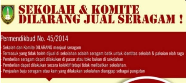 Didalam Permendikbud Nomor 50 tahun 2022 tersebut pada Pasal 12 ayat (1) menjelaskan, bahwa Pengadaan seragam sekolah menjadi tanggung jawab orang tua/wali murid, Sekolah dilarang melakukan penjualan seragam, baik Pendidik, Tenaga Kependidikan bahkan Komite Sekolah, dilarang menjual seragam atau bahan seragam secara langsung maupun tidak langsung, Sekolah hanya dapat membantu pengadaan seragam bagi peserta didik yang kurang mampu, bukan menjual atau bahkan mewajibkan pembelian seragam disekolah.