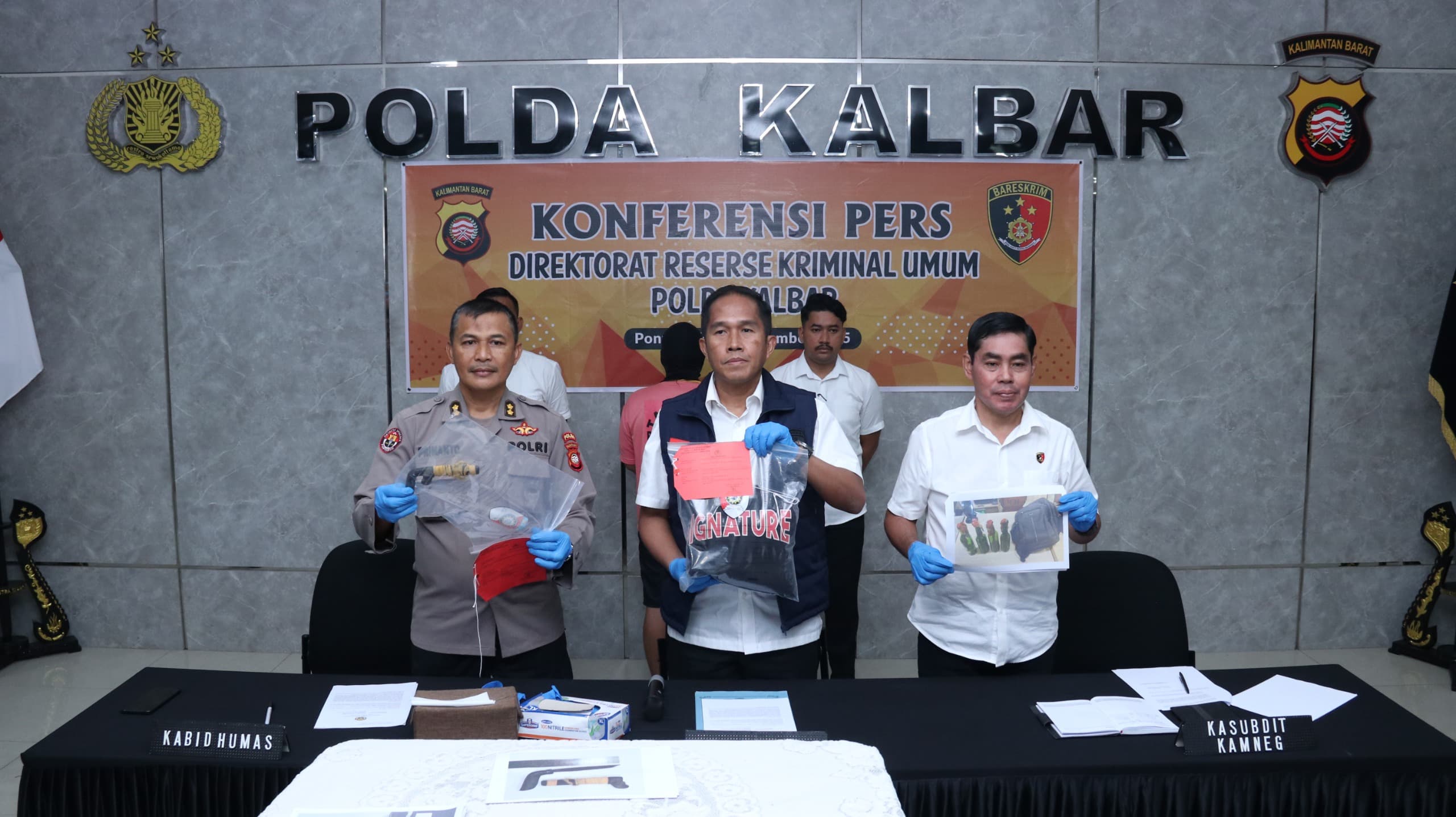 Konferensi Pers dipimpin oleh Ditreskrimum Polda Kalbar, Kombes Pol Raswin Bachtiar Sirait, S.H, S.I.K. M.Si didampingi oleh Kasubbid Penmas Bidhumas Polda Kalbar, AKBP Prinanto, dan Kasubdit Kamneg, Kompol Lely Suheri, S.H, M.M serta dihadiri oleh Para Awak Media baik Lokal maupun Media Nasional. (Rabu, 17/9/2025)