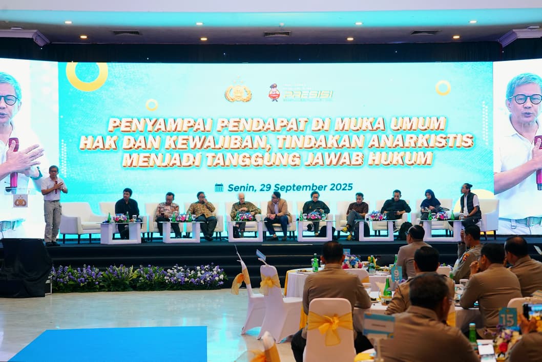 Dalam forum tersebut, para narasumber memberikan pandangan strategis terkait hak kebebasan berpendapat yang dijamin undang-undang, sekaligus menekankan pentingnya tanggung jawab hukum dalam mencegah tindakan anarkistis.