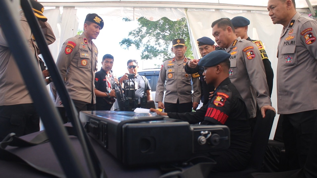 Di pos pantau, para personel memperagakan cara kerja alat pelumpuh drone yang mampu mendeteksi, sekaligus menonaktifkan drone tak berizin dalam hitungan detik. Langkah itu mendapat apresiasi dari Astamaops Kapolri.