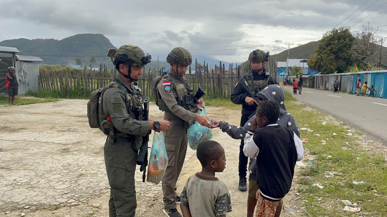 Patroli Satgas Ops Damai Cartenz di Intan Jaya: Interaksi dengan Warga dan Anak-anak di Sugapa