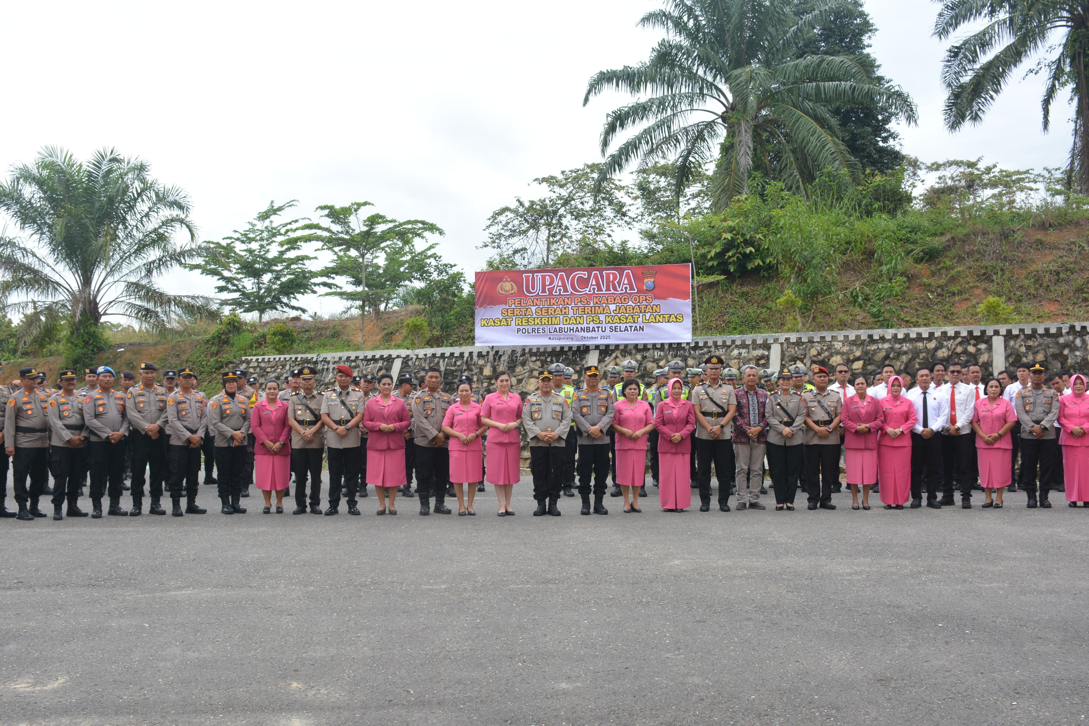 Jabatan Kasat Reskrim diserahterimakan dari AKP Endang R. Ginting, S.H., M.H. kepada penggantinya AKP Elimawan Sitorus, S.H., M.H., yang sebelumnya bertugas di lingkungan Polda Sumatera Utara. Sementara itu, IPTU Rostati Sihombing, S.Psi., M.Psi. dilantik sebagai PS Kasat Lantas Polres Labuhanbatu Selatan, menggantikan IPTU Sumardi, S.P., M.M. yang kini mendapat tugas baru sebagai Kasat Lantas Polres Mandailing Natal.