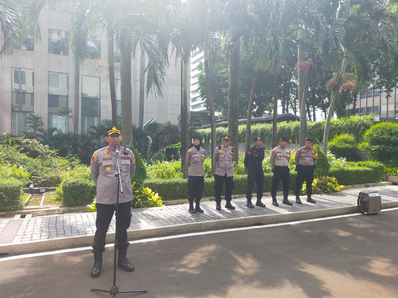 Dalam amanatnya, Kapolsek Metro Menteng Kompol Rezha Rahandhi menekankan pentingnya profesionalitas, sinergi, dan sikap humanis dalam pelaksanaan tugas pengamanan.