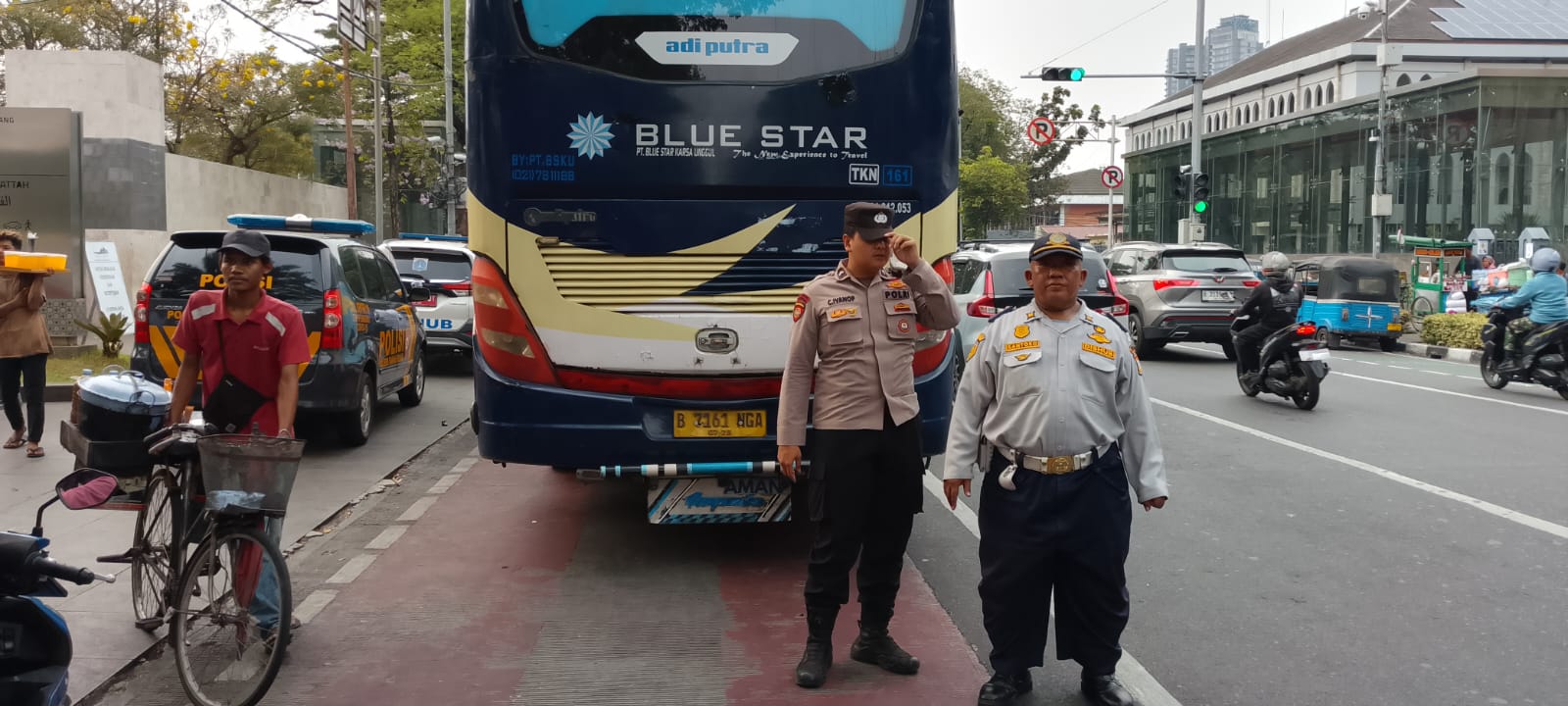 Sejak pukul 16.00 WIB, petugas Sabhara telah bersiaga di pintu Al Fattah Masjid Istiqlal untuk mengatur arus kendaraan jamaah yang datang menggunakan bus dari berbagai wilayah Jabodetabek. Bus hanya diperkenankan menurunkan penumpang di titik tertentu sebelum diarahkan ke area parkir yang telah disiapkan agar tidak menimbulkan kemacetan. Kehadiran polisi di lapangan disambut positif oleh jamaah yang menilai pengamanan berlangsung dengan tertib, humanis, dan penuh rasa hormat terhadap kegiatan ibadah.