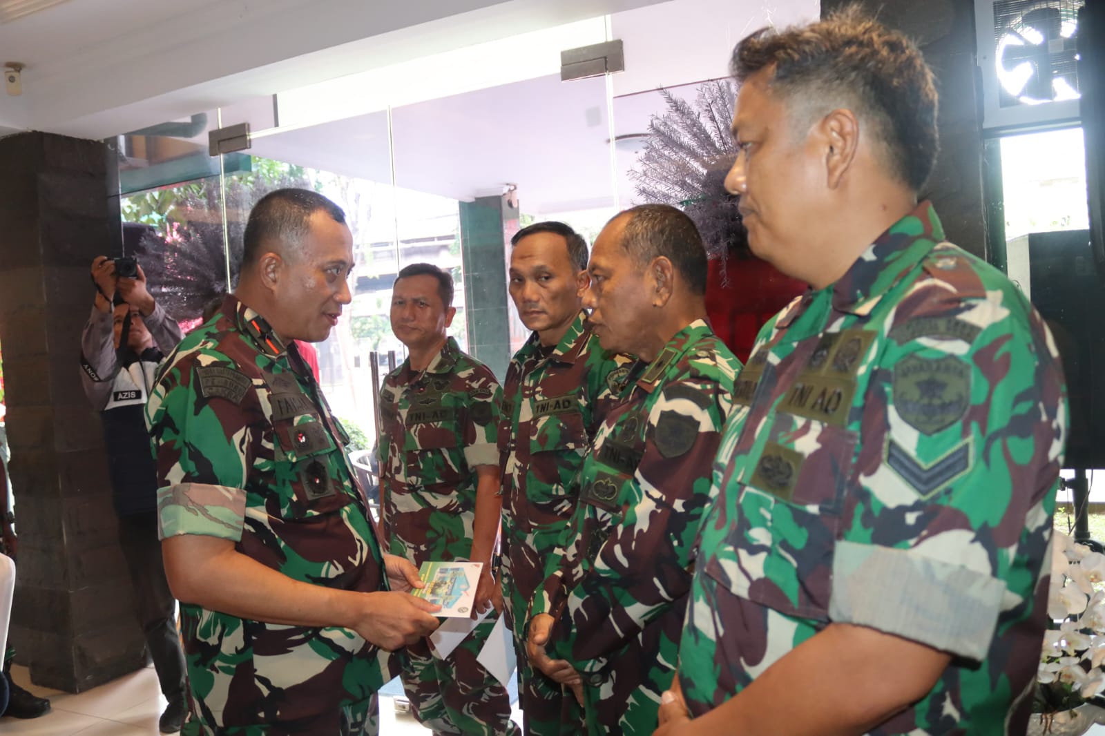 Acara kemudian dilanjutkan dengan sesi foto bersama dan penampilan atraksi menarik berupa beladiri taktis yang diperagakan oleh ibu-ibu Persit Kodim 0502/JU, menunjukkan semangat dan kemampuan para istri prajurit. Setelah itu istirahat sejenak di loby Makodim.