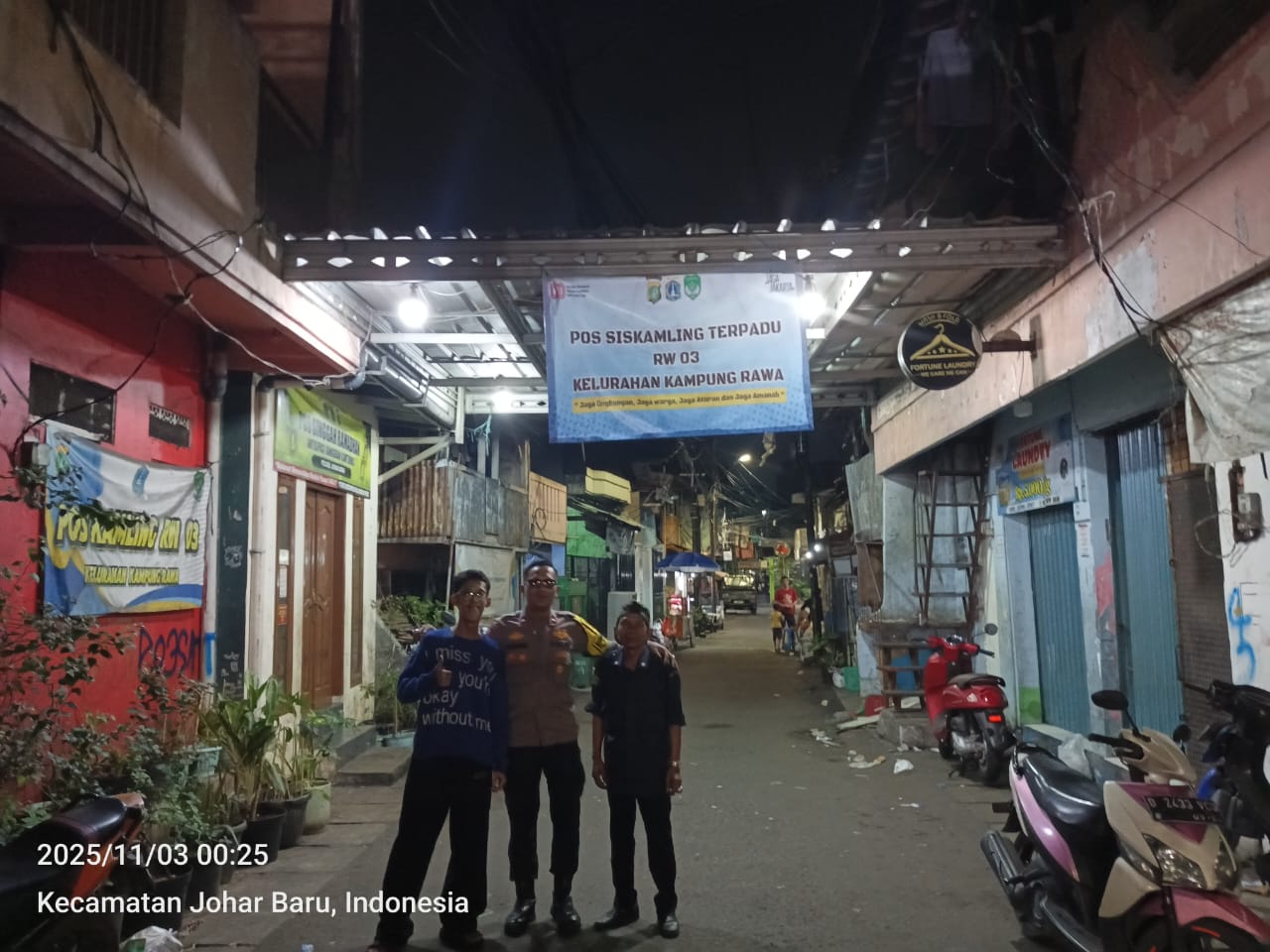 Jakarta Pusat – Dalam rangka meningkatkan keamanan lingkungan dan mempererat sinergi dengan masyarakat, Bhabinkamtibmas Kelurahan Kampung Rawa, Aipda Ikhwan, melaksanakan patroli wilayah dan kunjungan ke Pos Siskamling RW 03, Senin (3/11/2025) pukul 00.30 WIB.