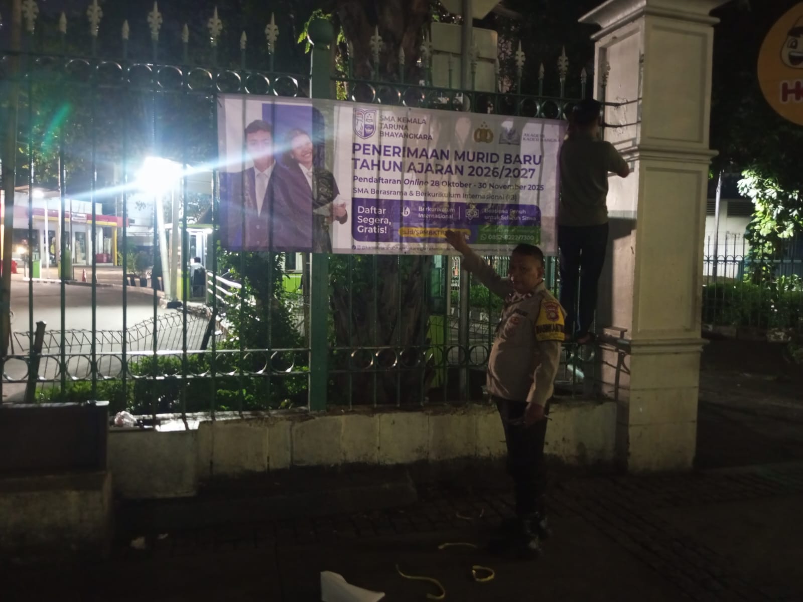 Jakarta Pusat, 4 November 2024 — Dalam upaya mendukung dunia pendidikan dan mencetak generasi muda berprestasi, Bhabinkamtibmas Kelurahan Duri Pulo, Aipda Purwanto, melaksanakan kegiatan pemasangan spanduk Penerimaan Murid Baru Tahun Ajaran 2026/2027 SMA Kemala Taruna Bhayangkara di wilayah Kecamatan Gambir, Jakarta Pusat.