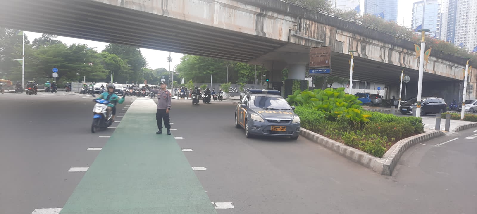 Polisi Siaga Pagi Hari, Patko 1052 dan Unit Lantas Lancarkan Arus Kendaraan Pagi Hari di TL. Karet Bivak Perbesar