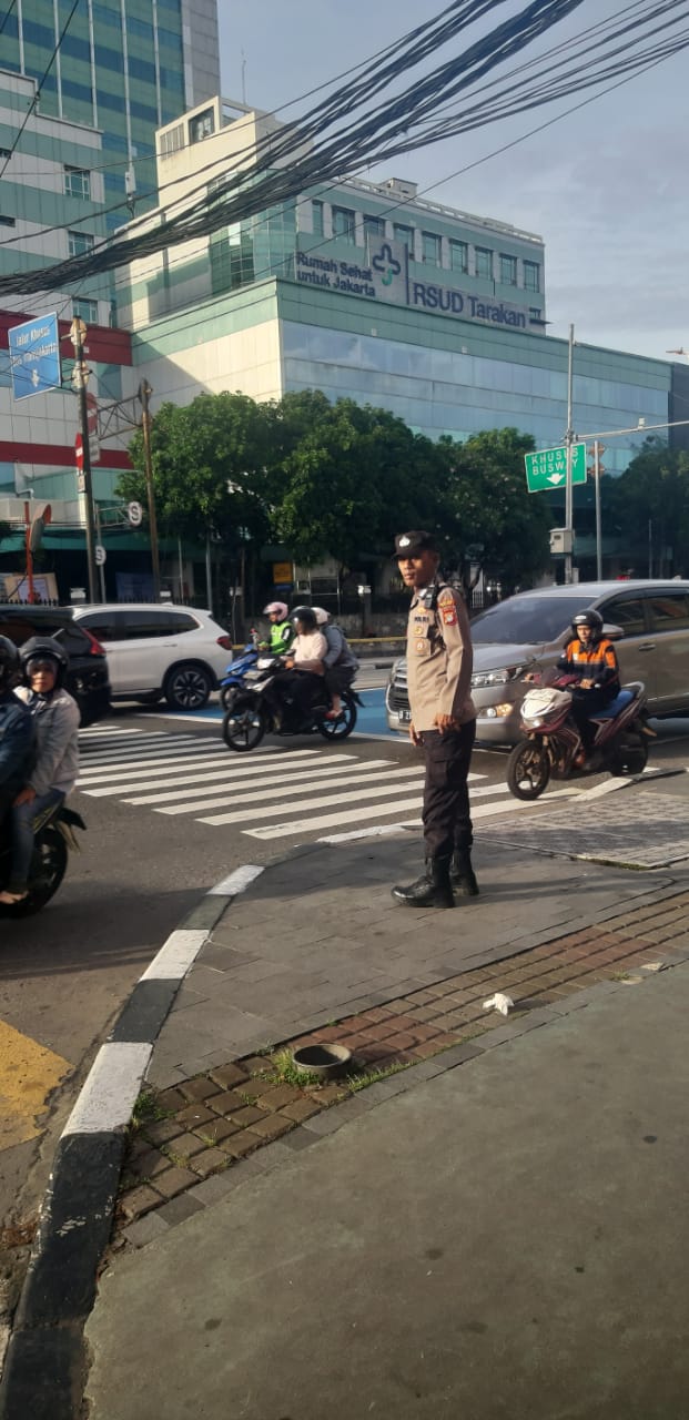 Dengan penuh tanggung jawab, petugas mengatur pergerakan kendaraan dari arah Jl. Cideng dan Jl. KH. Hasyim Ashari, memastikan tidak terjadi penumpukan di perlintasan padat tersebut. Kehadiran polisi pagi itu bukan hanya menciptakan kelancaran arus, tetapi juga menghadirkan rasa aman bagi pengguna jalan.