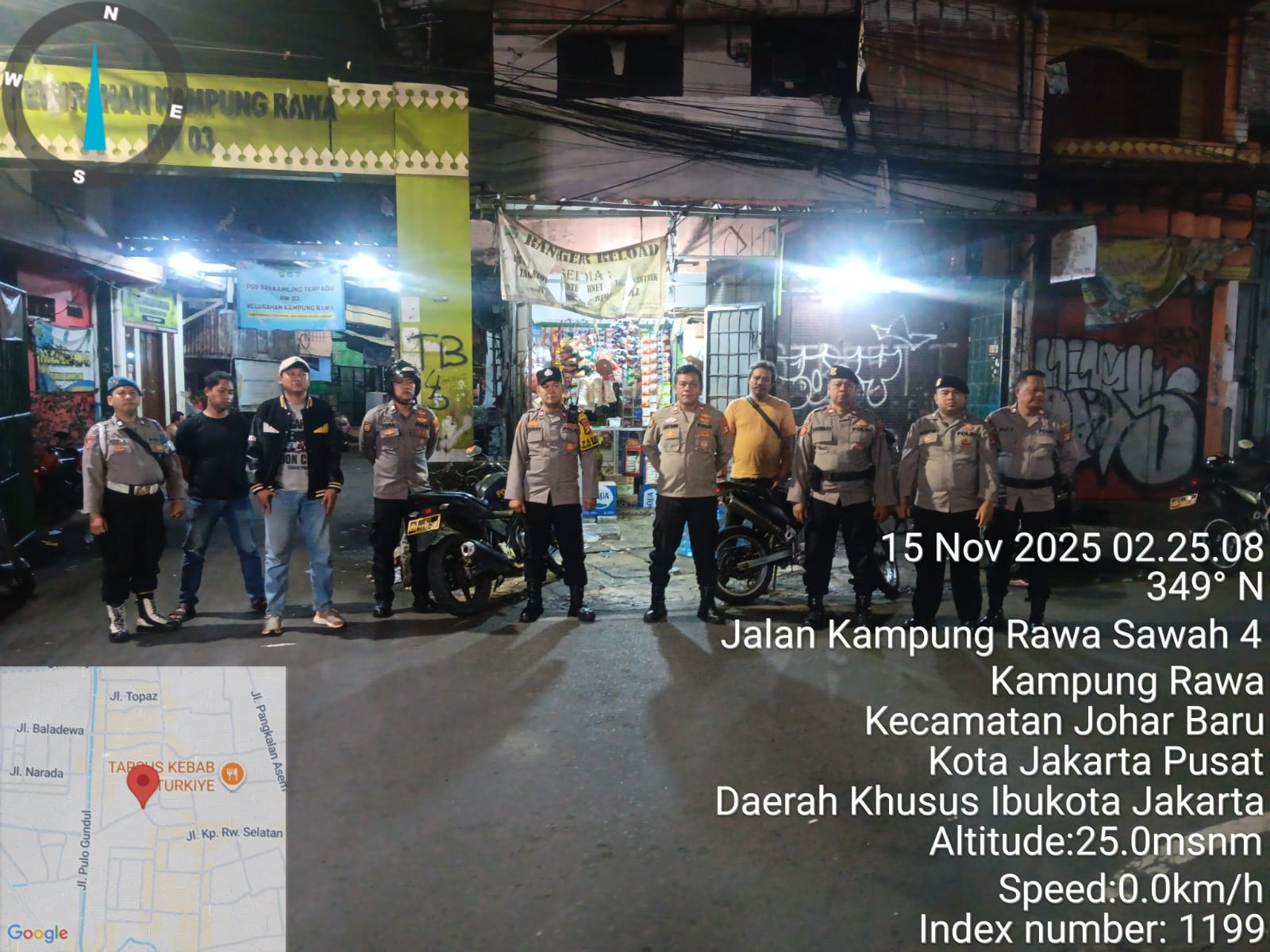 Jakarta Pusat – Polsek Johar Baru menggelar Patroli Cipta Kondisi antisipasi gangguan kamtibmas pada Sabtu (15/11/2025) pukul 02.30 WIB. Dipimpin Padal Aiptu Sony Adi S. bersama 10 personel, patroli mobile menyusuri sejumlah titik rawan, mulai Jl. Kramat Pulo Gundul, Kramat Jaya Baru, Kampung Rawa Sawah, Gang T, Galur Jaya, Letjen Suprapto, hingga kawasan Tanah Tinggi.
