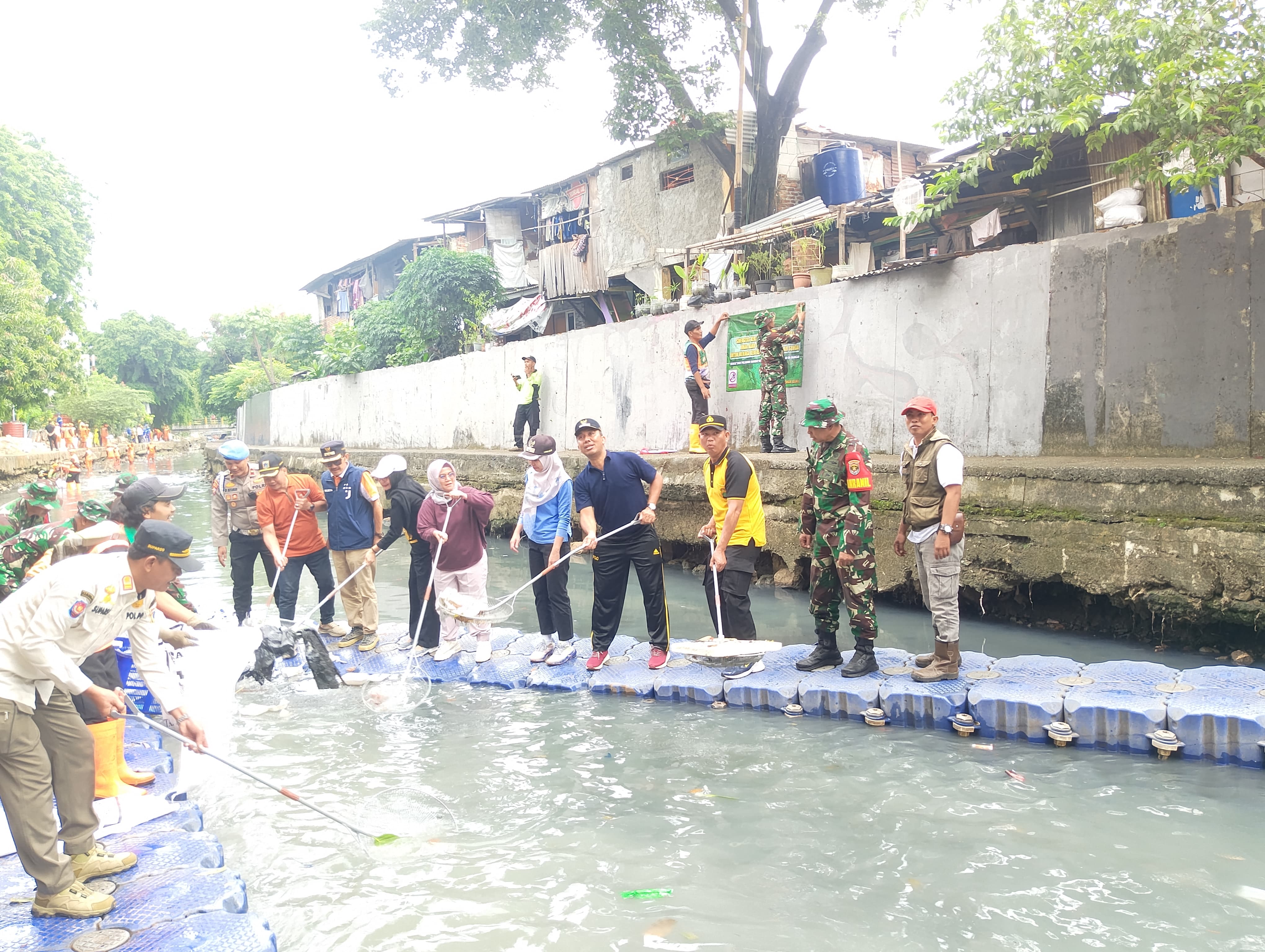 Sinergi Tiga Pilar, Warga dan Aparat Bersih-bersih Kali Sentiong di Johar Baru