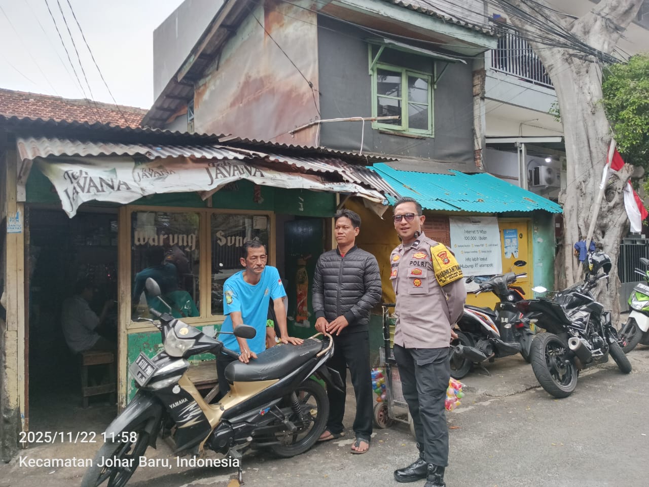 Jakarta Pusat – Upaya menjaga stabilitas keamanan wilayah terus dilakukan jajaran Polsek Johar Baru. Pada Sabtu, 22 November 2025 pukul 11.58 WIB, Bhabinkamtibmas Kelurahan Kampung Rawa Aipda Ikhwan melaksanakan kegiatan Cooling System, Patroli wilayah, serta Door to Door System (DDS) di lingkungan RT 17 RW 04, Jl Rawa Selatan 2, Kampung Rawa, Johar Baru.