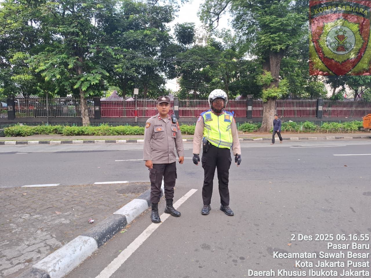 Jakarta Pusat — Harapan warga terhadap keamanan dan kelancaran lalu lintas pada jam sibuk pagi langsung direspons Polri melalui kegiatan pengaturan lalin di sejumlah titik padat. Polsek Sawah Besar menurunkan personel untuk memastikan mobilitas masyarakat berlangsung aman, tertib, dan bebas dari potensi kemacetan maupun gangguan kamtibmas. Selasa (2/12/2026)