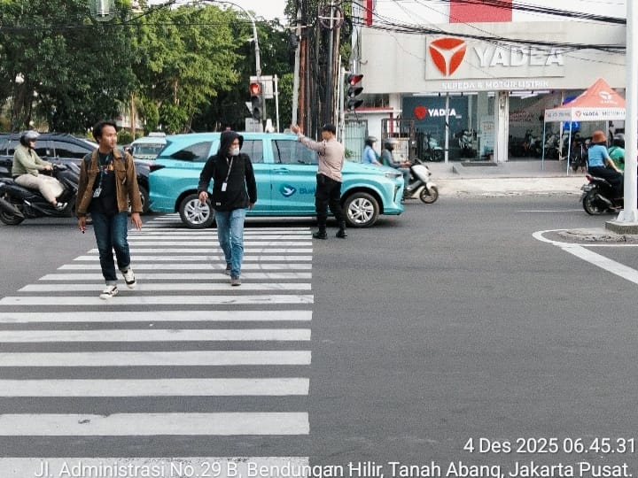Jakarta Pusat —Dalam rangka menjaga kelancaran dan ketertiban lalu lintas, Polsek Metro Tanah Abang melaksanakan kegiatan pengaturan arus lalu lintas di kawasan traffic light (TL) Penjernihan Raya, Tanah Abang, Jakarta Pusat. Kamis (4/12/2025) pagi.
