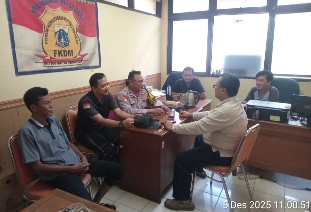 Jakarta Pusat — Dalam rangka menjaga kondusivitas wilayah serta memperkuat deteksi dini terhadap potensi gangguan keamanan, Bhabinkamtibmas Kelurahan Johar Baru, Aiptu Sunarto, melaksanakan kegiatan Cooling System dan koordinasi kamtibmas bersama Forum Kewaspadaan Dini Masyarakat (FKDM) pada Jumat (5/12/2025) pukul 11.00 WIB bertempat di Ruang FKDM Kelurahan Johar Baru, Jl. Johar Baru Utara III RW 03, Kecamatan Johar Baru, Jakarta Pusat.