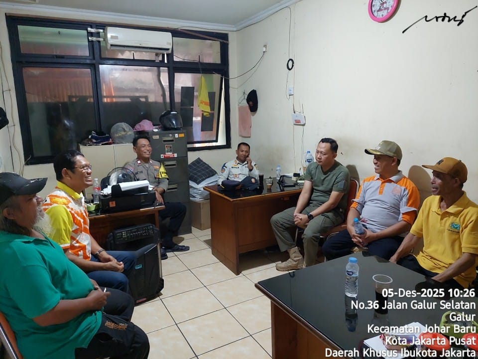 Jakarta Pusat — Dalam rangka memastikan situasi kamtibmas tetap kondusif menjelang perayaan Natal dan Tahun Baru 2026, unsur 3 Pilar Kelurahan Galur melaksanakan kegiatan koordinasi keamanan pada Jumat, 5 Desember 2025, pukul 13.30 WIB, bertempat di Ruang 3 Pilar Kelurahan Galur, Jl. Galur Jaya RT 001/04, Kecamatan Johar Baru, Jakarta Pusat.