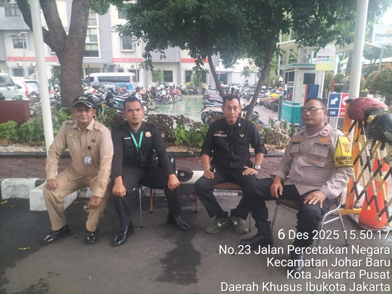 Jakarta Pusat — Upaya menjaga stabilitas keamanan di lingkungan perkantoran terus diperkuat oleh Polsek Johar Baru. Pada Sabtu (6/12/2025) pukul 16.30 WIB, Bhabinkamtibmas Kelurahan Johar Baru, Aiptu Sunarto, melaksanakan kegiatan cooling system sekaligus patroli lingkungan di Kantor Litbangkes, Jalan Percetakan Negara Raya No. 23, RW 07, Johar Baru.