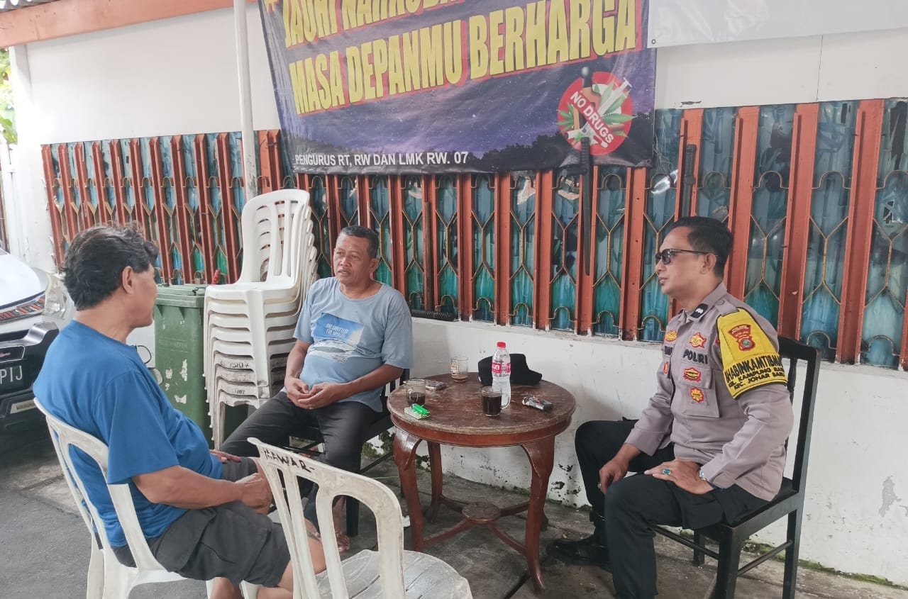 Dalam kegiatan tersebut, Aipda Ikhwan berdialog secara langsung dengan Pak Haris selaku Katibum RW07 dan warga setempat. Himbauan Kamtibmas disampaikan, termasuk menjaga kewaspadaan terhadap tindak kejahatan seperti curanmor, serta pentingnya deteksi dini dan pencegahan dini untuk menjaga keamanan lingkungan.