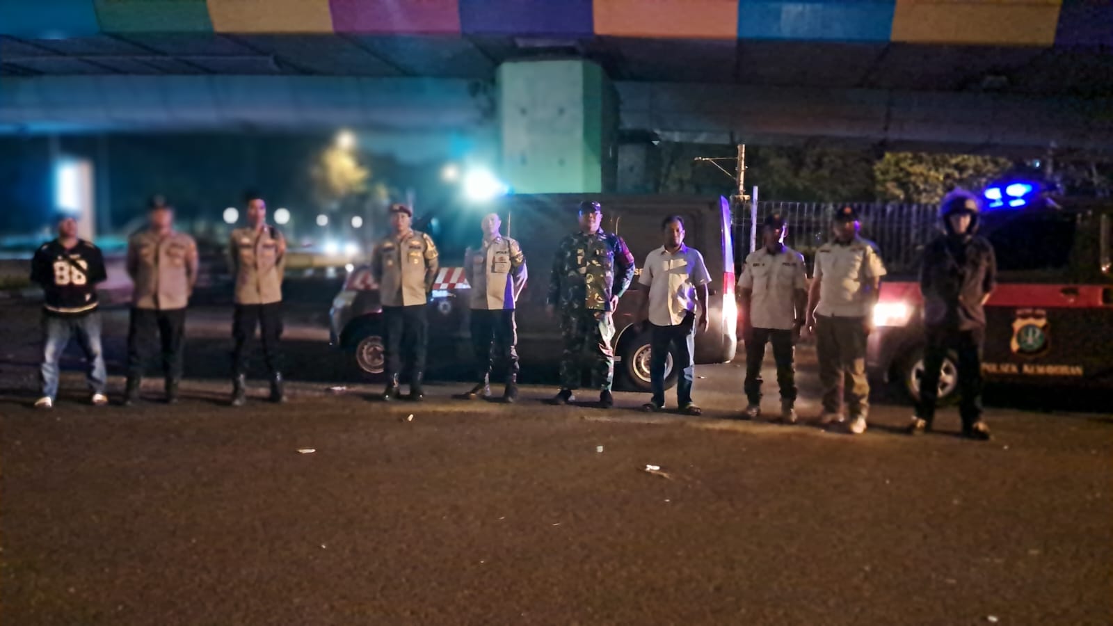 Di Rusun Tahap 3 dan Fly Over HBR Motik, petugas melakukan pemantauan situasi serta memberikan imbauan kepada masyarakat yang masih beraktivitas. Pada pukul 23.16 WIB, patroli bergerak ke kawasan Patung Ondel-ondel, dilanjutkan ke area Pekan Raya Jakarta yang juga sering menjadi titik keramaian pada malam hari.