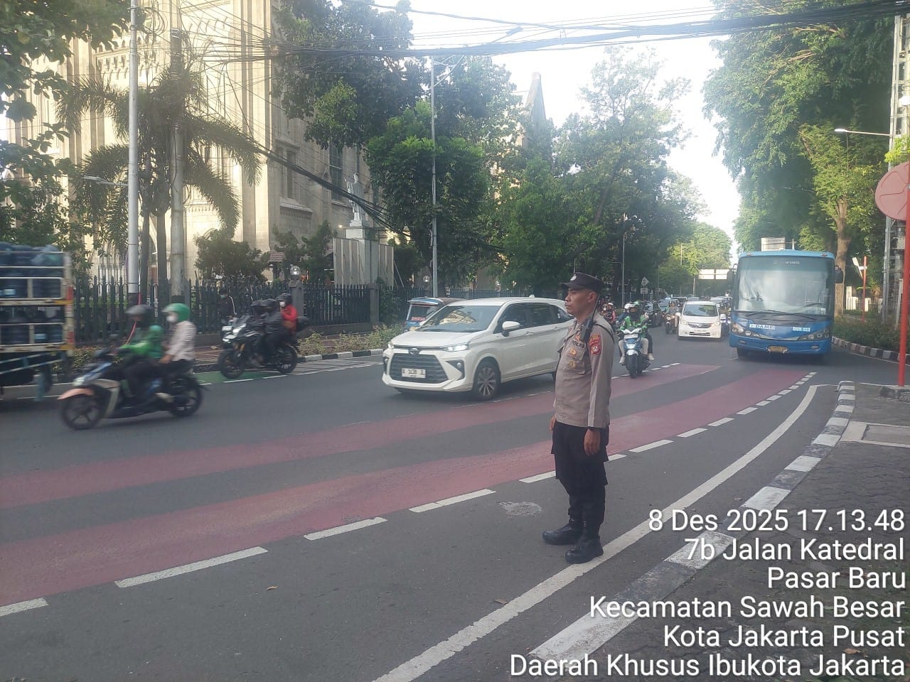 Jakarta Pusat — Polsek Sawah Besar menggelar pelayanan publik progresif di sejumlah titik rawan kemacetan, Senin sore (8/12/2025). Kegiatan ini dilaksanakan sejak pukul 16.00 hingga selesai sebagai upaya pencegahan kecelakaan lalu lintas sekaligus memastikan kelancaran mobilitas warga pengguna jalan yang pulang kerja, Pelayanan dan pencegahan tersebut dipimpin oleh Kanit Patroli Polsek Sawah Besar, Iptu Syafrizal, bersama Aiptu Toni Susanto, dan 5 personil lainya di bantu oleh 6 personil Satlantas Polda Metro Jaya, mereka ditempatkan di beberapa titik strategis, antara lain TL Mbal, TL Golden/Pintu Besi, pertigaan Katedral serta kawasan Lapangan Banteng Utara yang menjadi akses utama menuju Sekolah Santa Ursula. Fokus pengaturan tidak hanya menjaga kelancaran arus kendaraan, tetapi juga memberikan rasa aman bagi masyarakat.