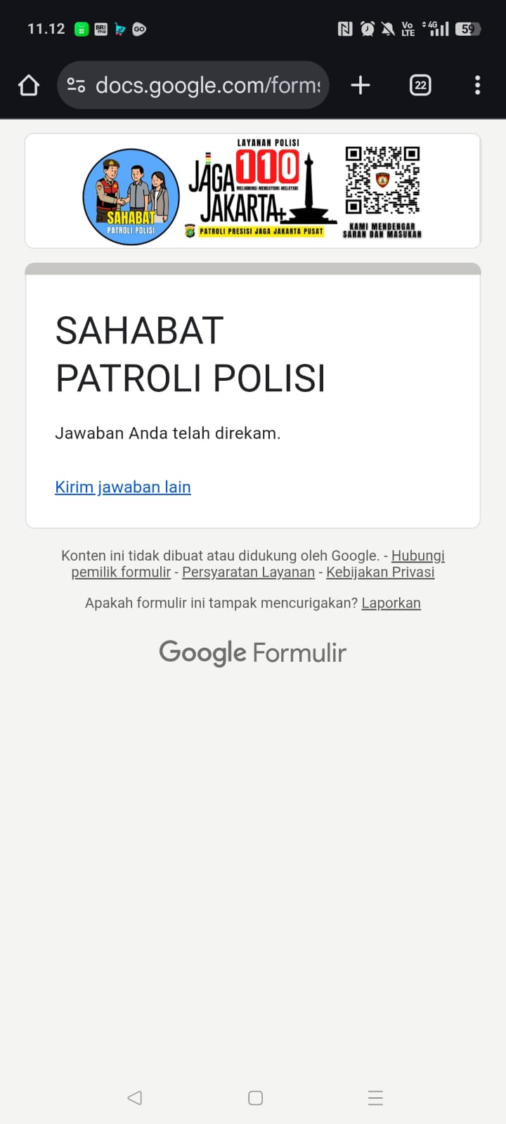 “Sekarang warga tidak perlu repot-repot datang ke kantor polisi bila ingin melaporkan sesuatu yang mendesak. Cukup pindai barcode yang tersedia, lalu sampaikan informasinya. Laporan tersebut langsung diterima oleh petugas kami,” ujar Susatyo kembali.