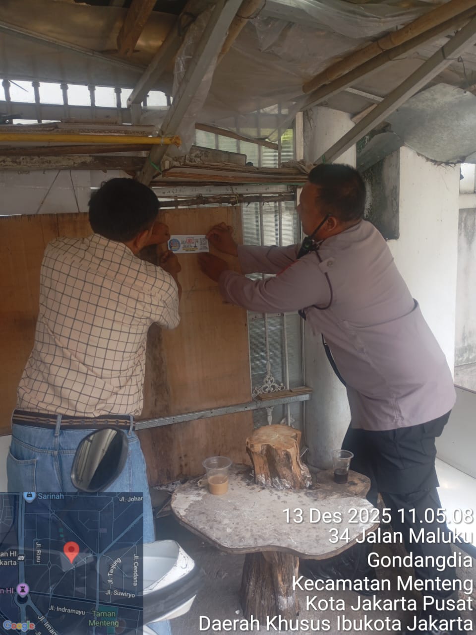Jakarta Pusat – Dalam rangka meningkatkan partisipasi masyarakat serta mempercepat layanan kepolisian berbasis digital, anggota Samapta Polsek Metro Menteng bersama Aipda Dion Sinaga melaksanakan kegiatan sosialisasi Barcode Sahabat Patroli Polisi dengan menempelkan stiker barcode di sepanjang Jalan Maluku, Kelurahan Gondangdia, Kecamatan Menteng, Jakarta Pusat. Sabtu (13/12/2025)