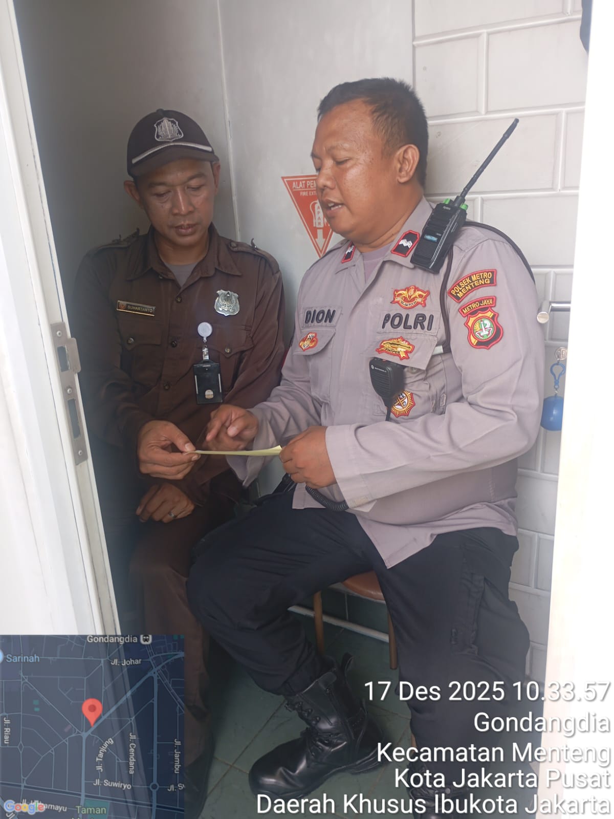 Jakarta Pusat – Dalam rangka meningkatkan kualitas pelayanan kepolisian yang cepat, efektif, dan berbasis teknologi, anggota Samapta Polsek Metro Menteng bersama Aipda Dion Sinaga melaksanakan kegiatan sosialisasi Barcode Sahabat Patroli Polisi dengan menempelkan stiker barcode di Jalan Samratulangi No. 52, Menteng, Jakarta Pusat. Rabu (17/12/2025)