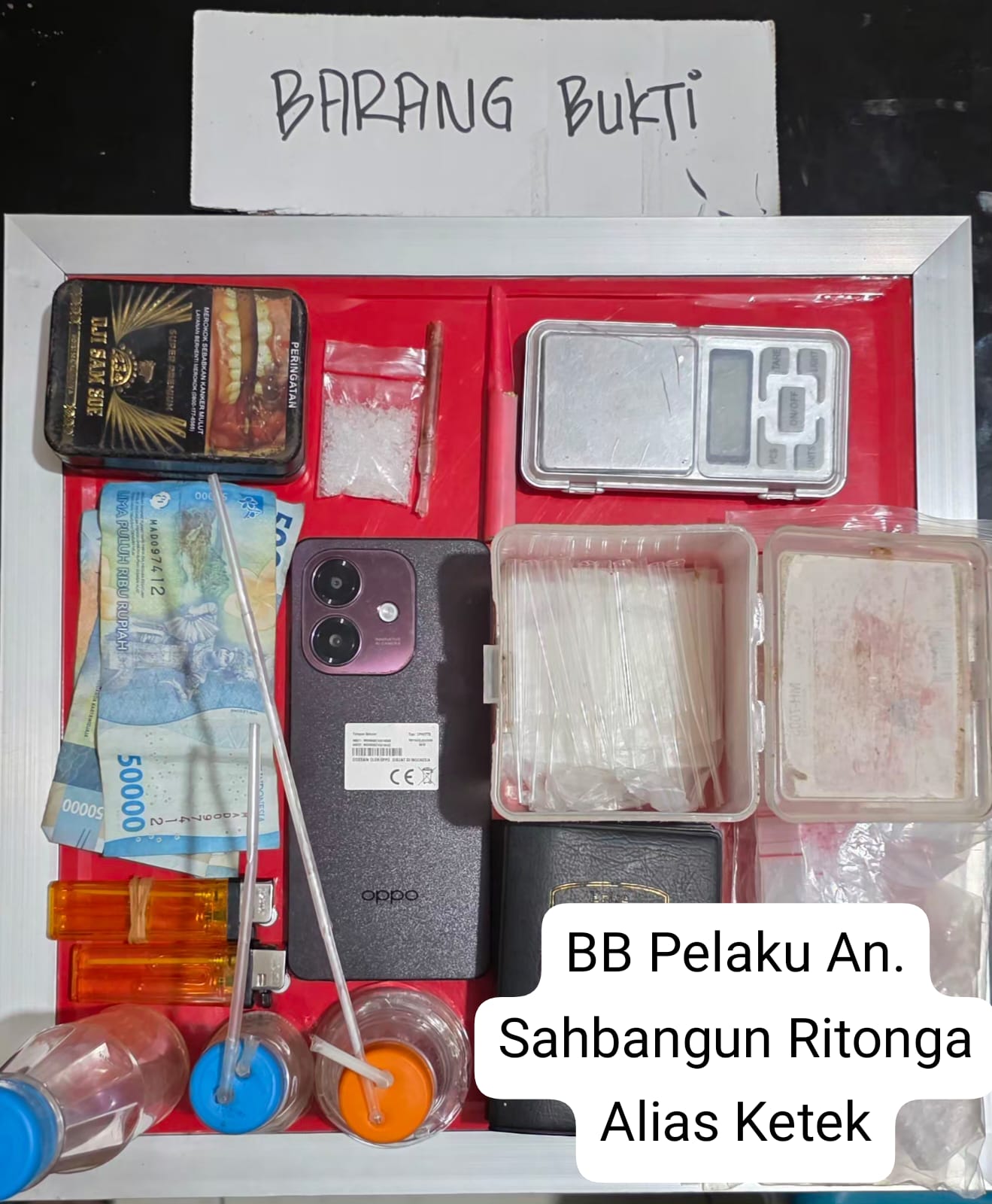 Pada Hari Jumat anggal 24 April 2026 sekitar pukul 20.00 Wib, Team Opsnal Sat Res Narkoba Polres Labuhanbatu bersama Dit Narkoba Polda Sumut yang dipimpin oleh KASUBDIT II AKBP HENDRO berhasil mengamankan 1 (satu) orang Pelaku Laki-Laki bernama *SAHBANGUN RITONGA ALIAS KETEK* berikut barang bukti berupa 1 (satu) bungkus plastik klip diduga berisikan narkotika jenis sabu seberat *3.89 Gram/Brutto* yg berada di lantai rumah tepat dibelakang pelaku dan barang bukti lain. M.. SUKMA
